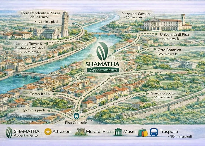 Shamatha Family Apartment Pisa Parking는 피사의 사탑에서 1.1km 떨어져 있습니다. 이 숙소에는 1개의 침실, 1개의 욕실과 부엌이 있습니다.